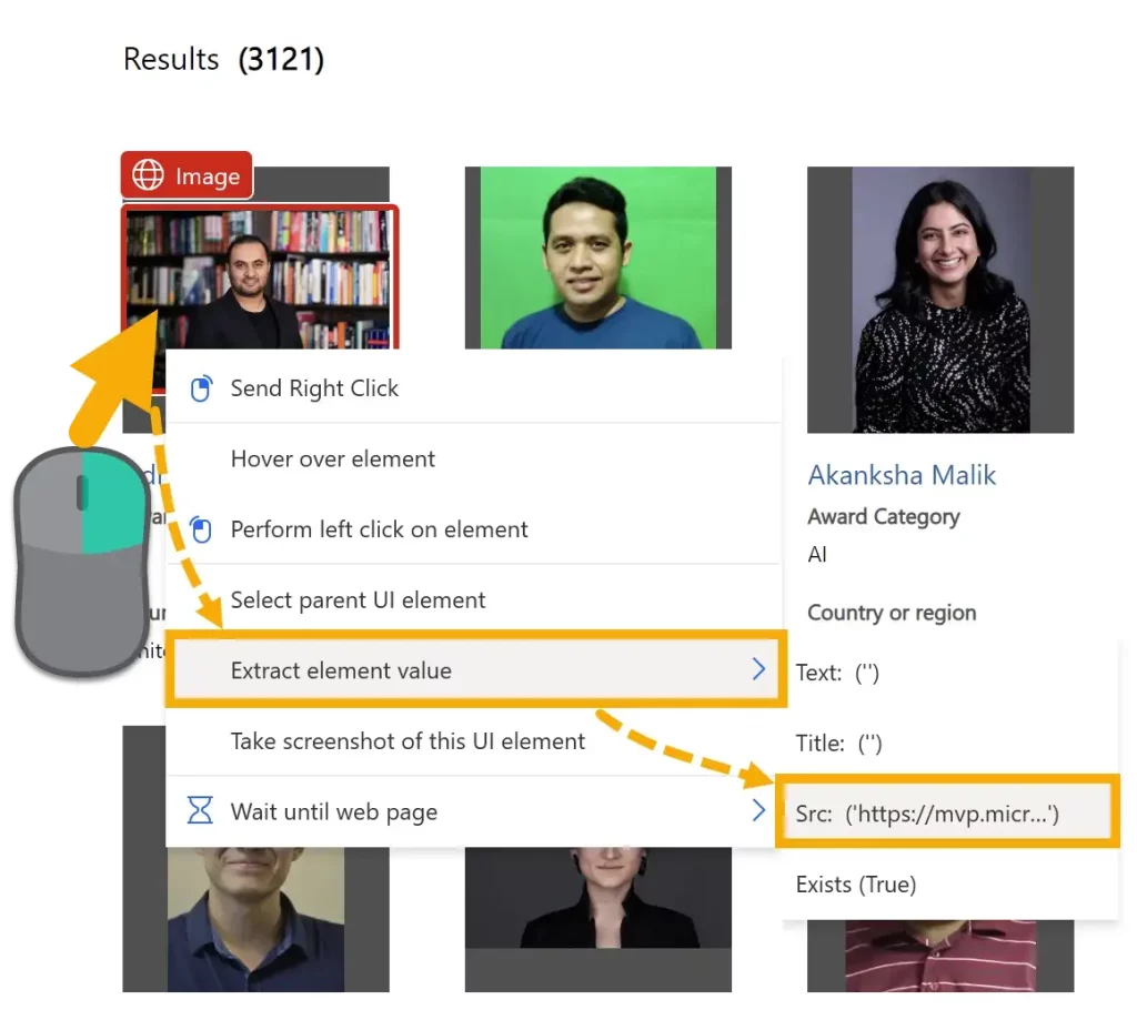 Right-click on the first profile image and select Extract element value > Src.
