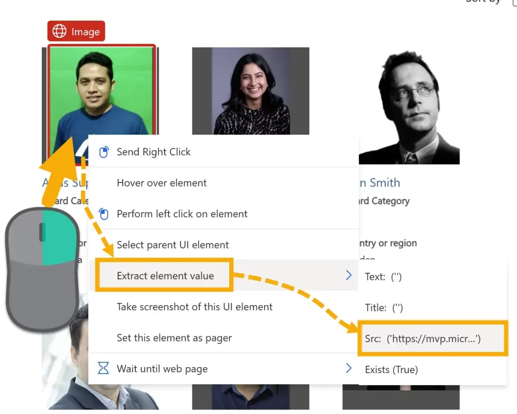 Right-click the second profile image and select Extract element value > Src.
