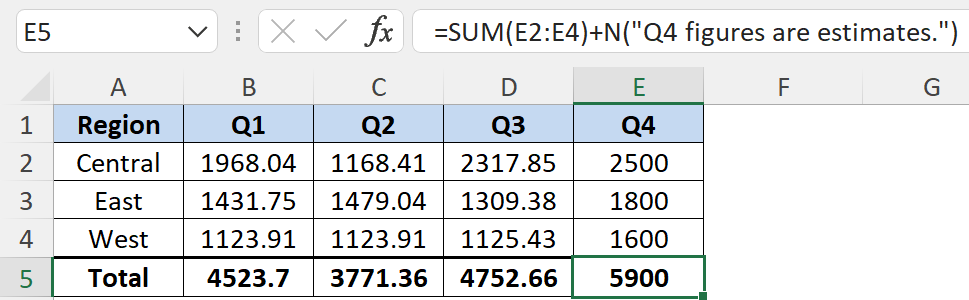 Add Comments to Formulas Using the N Function