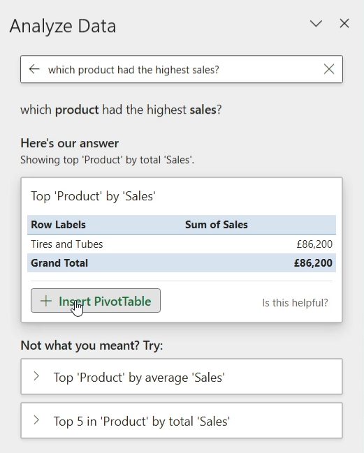 Analyze Data can be a real time-saver as it reduces the need to faff about with tables and charts yourself. It’s also being continually improved to become more intelligent and responsive to users’ needs.