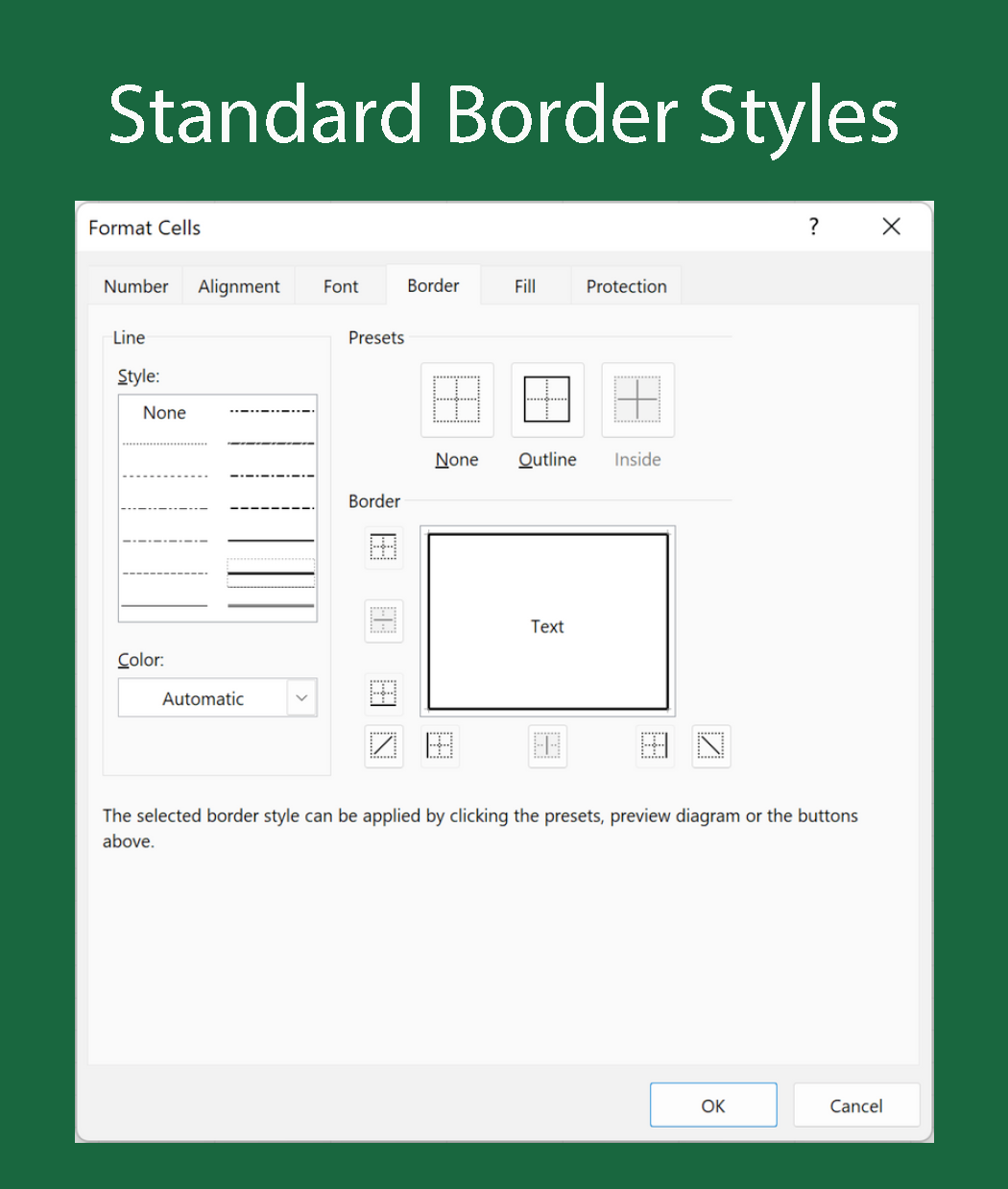 I’ve often wondered why the Format Cells window for conditional formatting only has half the border styles found in the standard one.