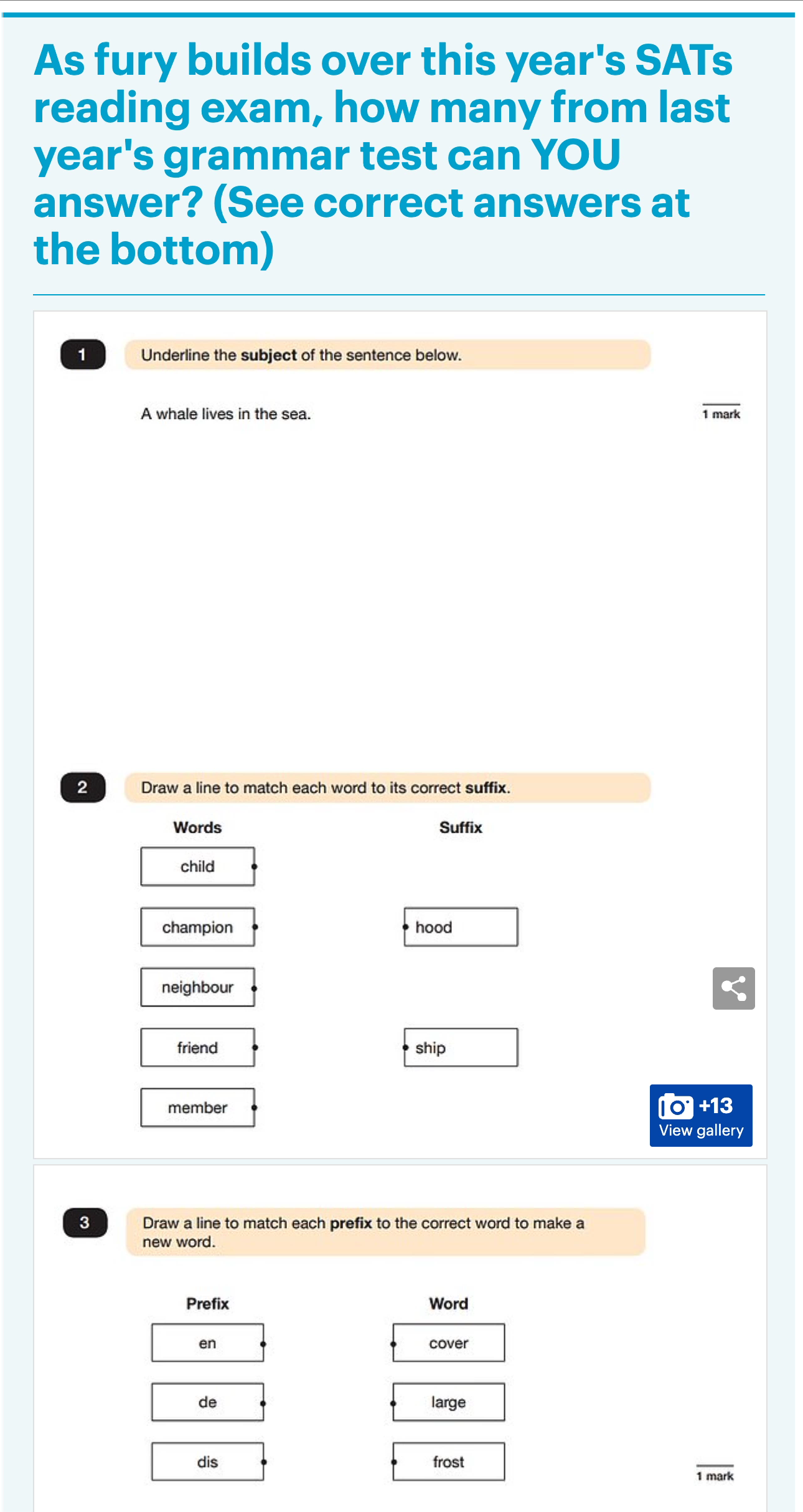 Nevertheless, MailOnline published 10 multiple-choice questions from last year’s grammar exam that you can give a go (answers provided at the bottom).
