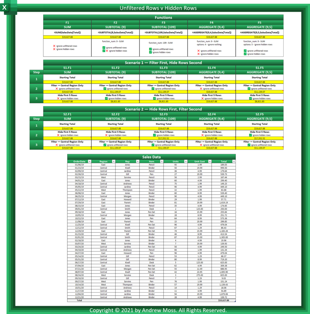 I hope with your newly acquired knowledge, you now have a greater understanding of how unfiltered and hidden rows are handled.