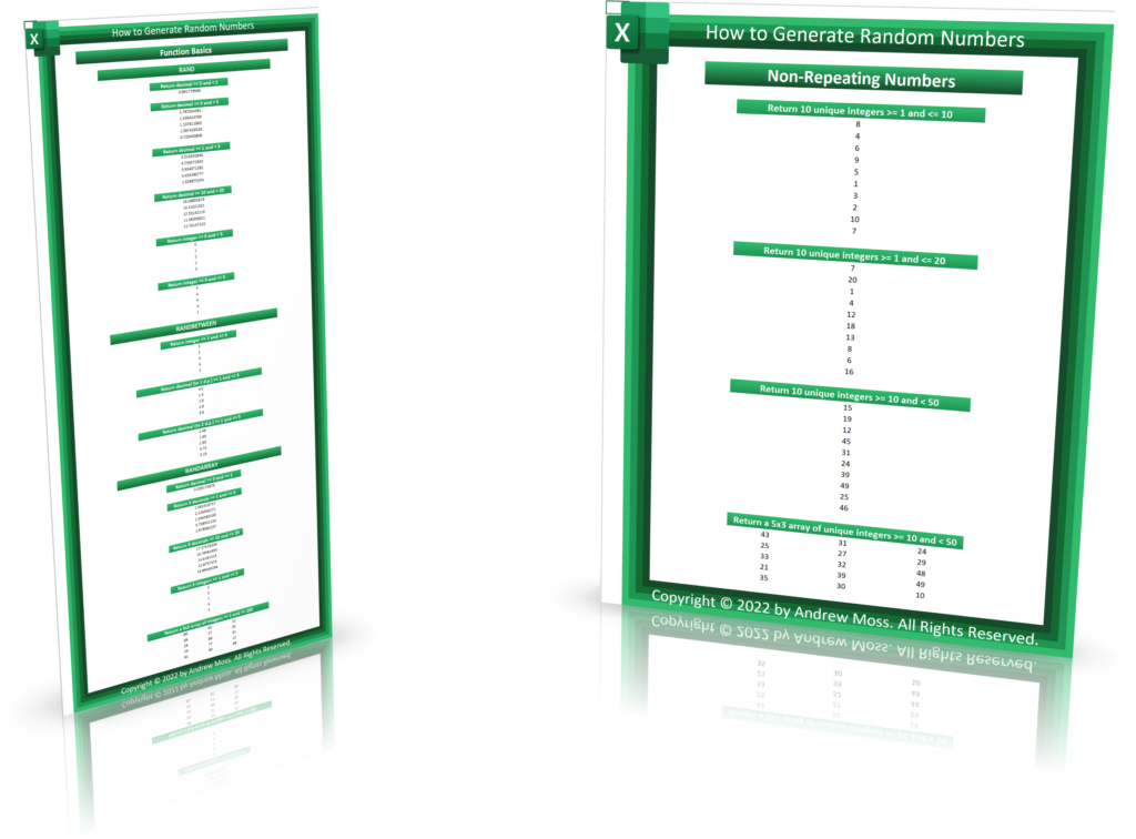 RANDBETWEEN is the other original function. It returns a random integer between (and including) two specified values.