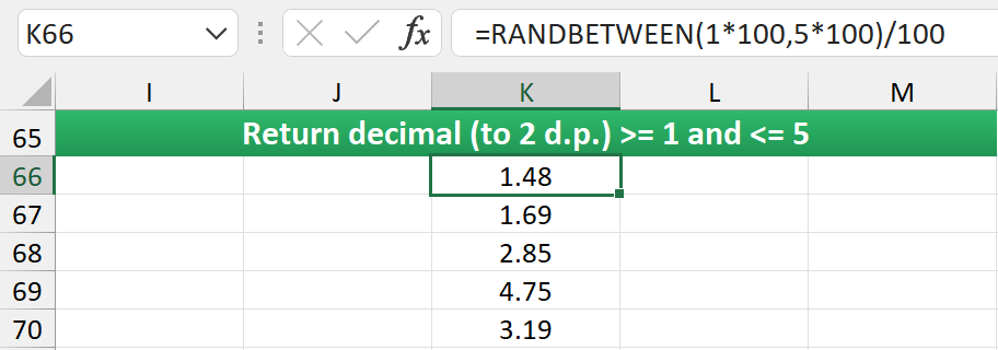 Generate Random Numbers Between a Range with RANDBETWEEN