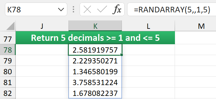 So far, youโve seen how to generate one random number for one cell. RANDARRAY enables you to generate a set of random numbers using a single formula. It is only available in Excel for Microsoft 365 and Excel 2021, however.