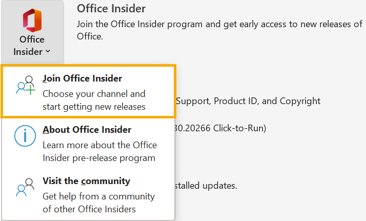 Join the Office Insider Program to test and explore new features in Office apps before they are released to the wider public.