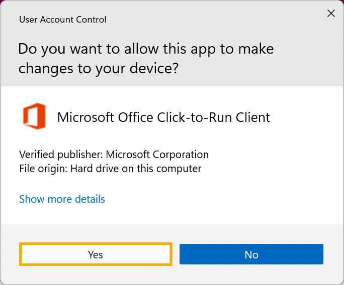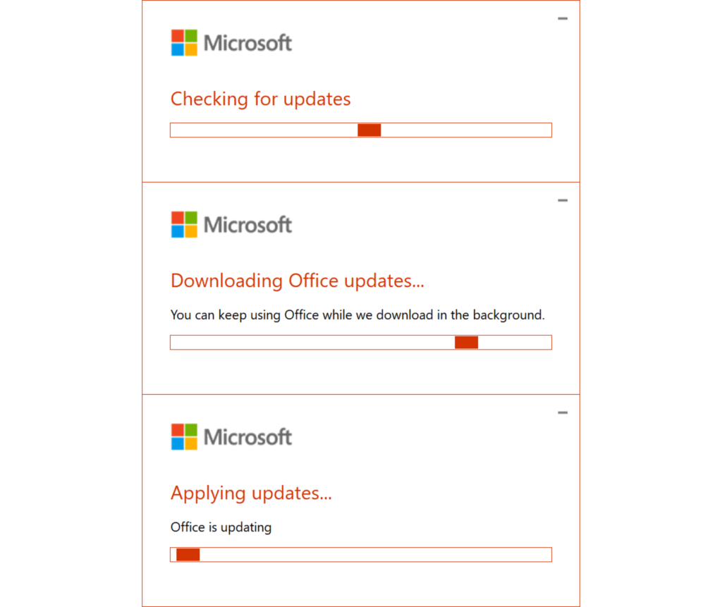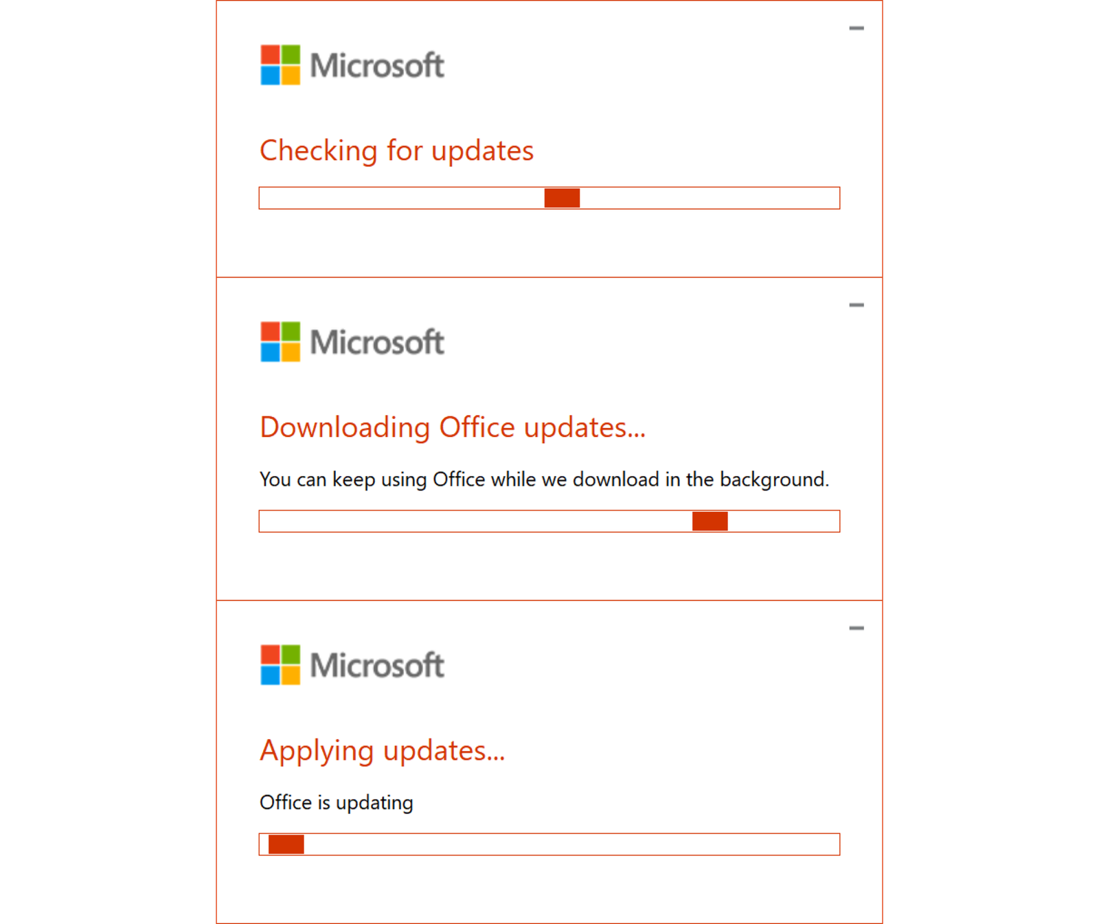 The app will attempt to download and apply the updates automatically, providing the Check for and apply updates for Office checkbox remains ticked.