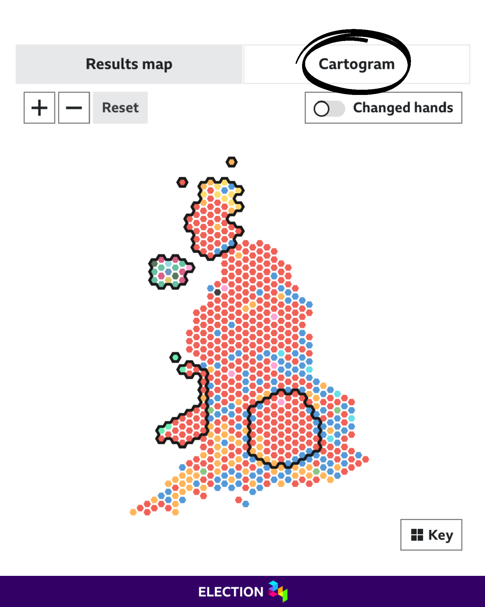 If you’ve been following the UK general election in the last few days, you might have bumped into one of these on various news websites. It’s offered as an alternative to the standard map view.