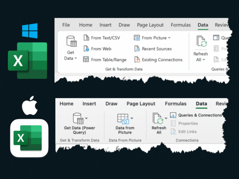 Interestingly, the words ‘Power Query’ feature in the Excel for Mac ribbon (albeit in brackets) but don’t in the Windows version. That’s despite the former having a non-existent editor (for now).