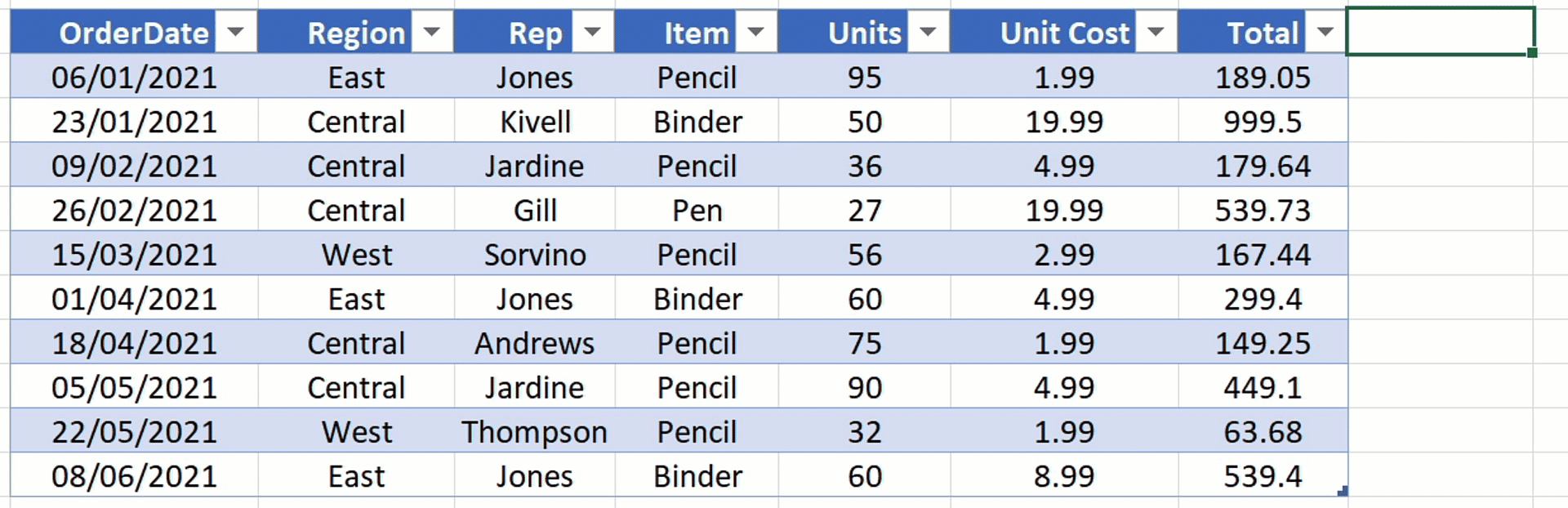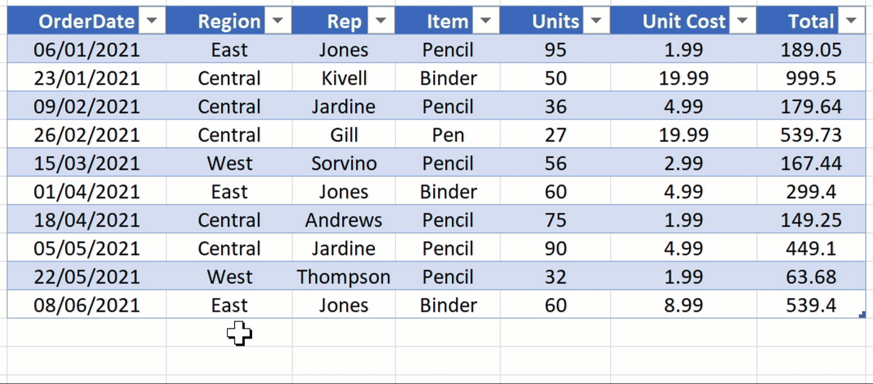 =tblSales[[#Totals],[OrderDate]]Reference the total row of multiple columns: