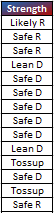 In v1, the strength of each state’s political leaning according to the poll averages were taken from the Financial Times’s election tracker. You could manually update the Strength column by choosing from the following categories: SOLID DEM, LEAN DEM, TOSS-UP, LEAN REP and SOLID REP. The big problem was that with some states jumping between categories daily, it annoyingly meant the column regularly become out of date, so you had to do the leg work.