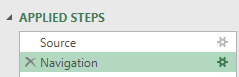 In the APPLIED STEPS pane on the right, press the gear icon in the Navigation step.