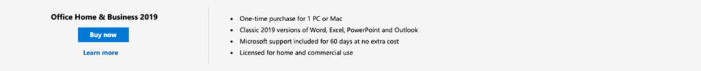 A quick look on the website and you’ll realise how low priority the Office Home & Business 2019 suite is. Housed in a slim panel and nestled away at the bottom out of sight, it’s clear they have no interest in promoting it.