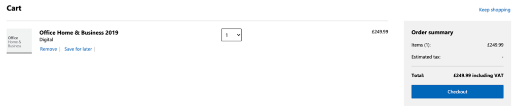 Clicking on the Buy now button immediately takes you to the checkout where you discover it costs a whopping £249.99/$249.99.