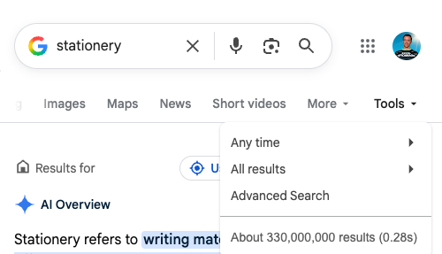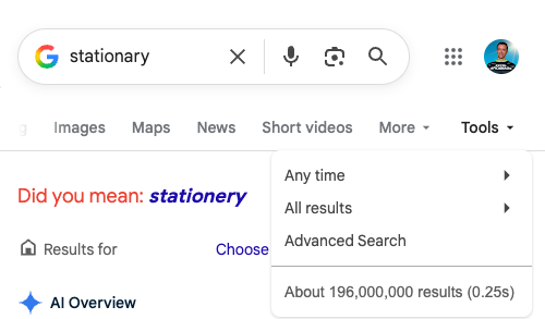 Nevertheless, as you can see, some pages had instances of stationery and stationary. Perhaps this reflects the setup behind the scenes, with merchandising, content, and web responsibilities split across different roles — not to mention varying levels of literacy.