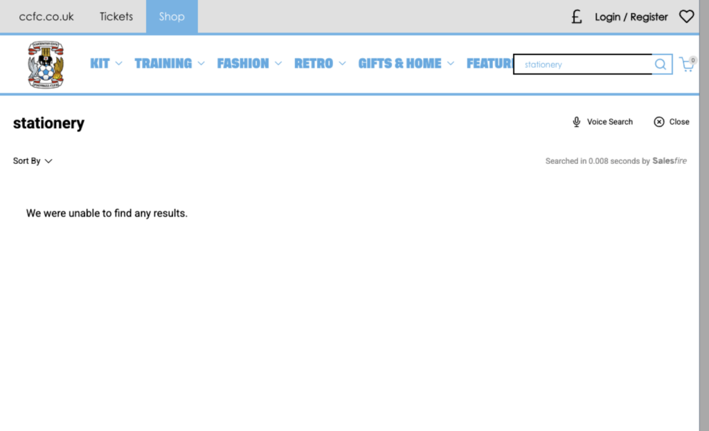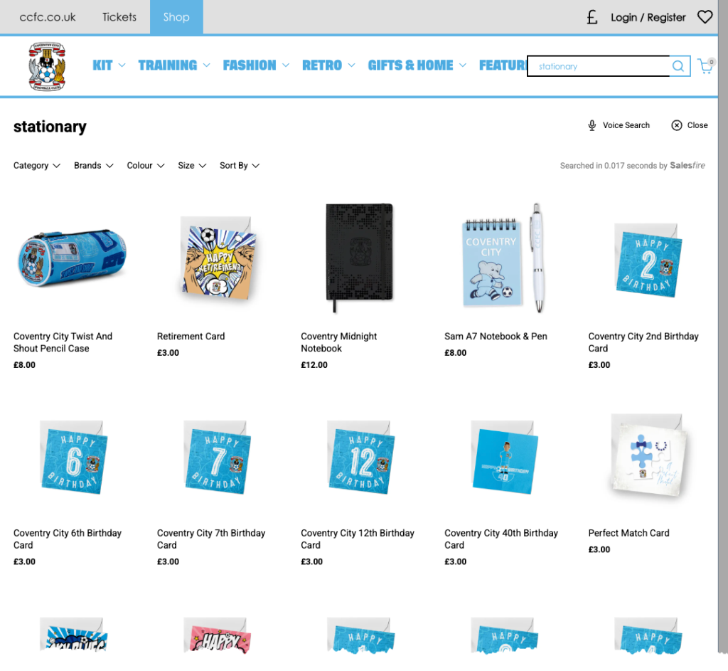 Most modern search systems on websites use fuzzy matching, making their capabilities more intelligent and less sensitive to typos. However, after I stumbled across Coventry City’s store, I realised this is not a given.