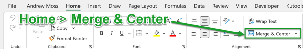 In this situation, typically you’d use Merge & Center, which is found in the Home tab.